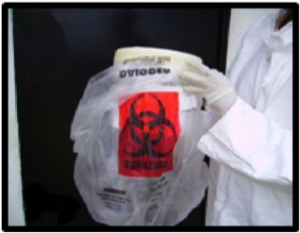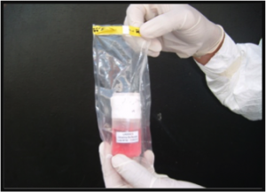 - Proceda a colocar dentro de la bolsa plástica para prevenir derrame, el vial plástico que contiene muestra.